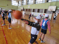なわとび大会もあるので、授業の最初に八の字飛びの練習・計測、後半にバスケを行っていました。
