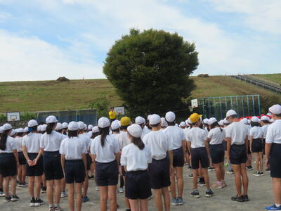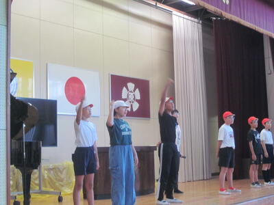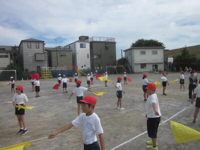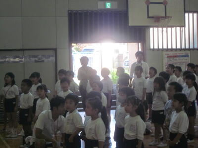 9月25日(木)に、音楽朝会で「ゴーゴーゴー」の歌を歌いました。