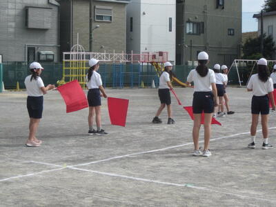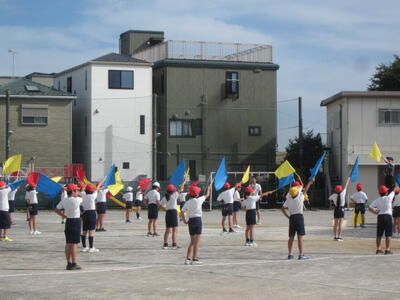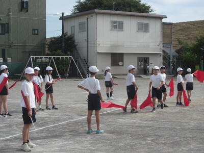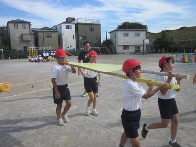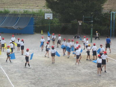 5年生は、運動会で行う団体種目「おまつりわっしょい」の練習をしています。