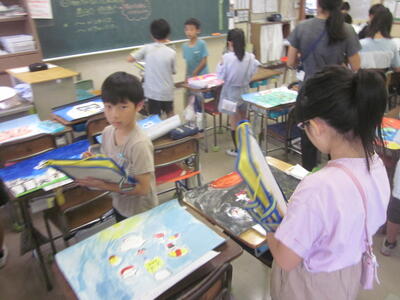 3年生は、図工で「未来へタイムスリップ」のテーマで絵を描きました。