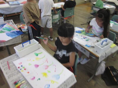 絵の具でどんなワクワクな島にしようか考えながら、筆を動かしました。