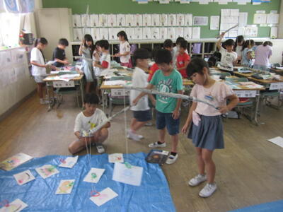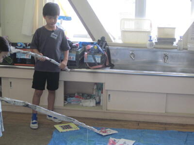 2年生は、1学期の学習内容を、魚釣りをしながら復習しました。