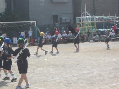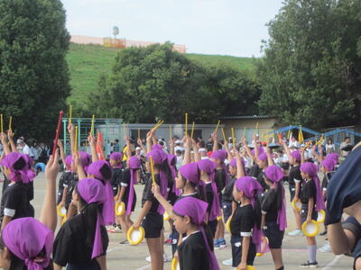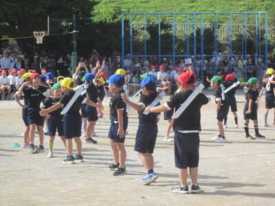 1年生は、運動会で「にんじゃだ!にんっ!にんっ!」を踊りました。