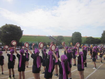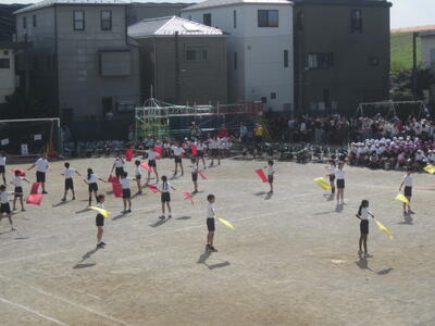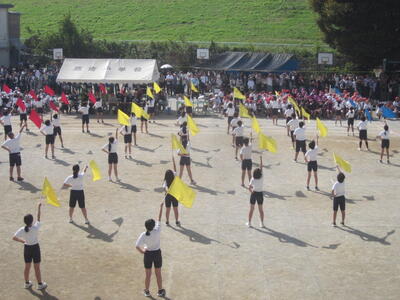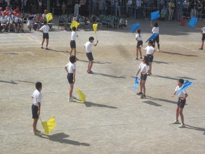 5年生は、運動会でフラッグダンスを行いました。