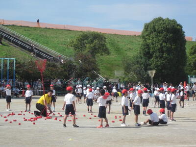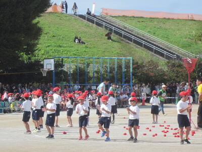 1年生は、運動会で「エビ!カニ!玉入れ!」を行いました。