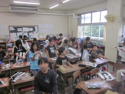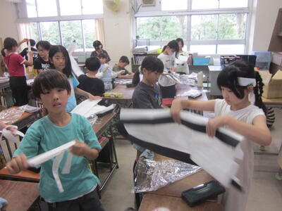 4年生は、運動会でソーラン節の時に使う衣装の準備をしました。