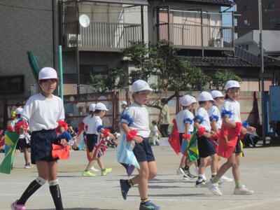 2年生 運動会 原町万博 投稿: 原町小学校 (10/25) 2年生は、運動会で「原町万博」を踊りました。 世界各国の曲に合わせて踊ります。 たくさんの曲を、しっかりと覚えました。 みんな笑顔で楽しそうに踊ることができましたね。 この原町でも、2年生が万博を盛り上げてくれましたね!