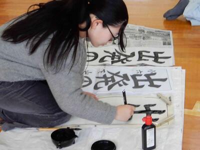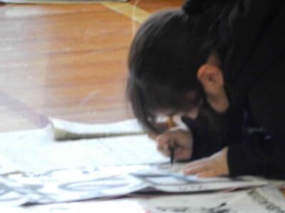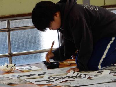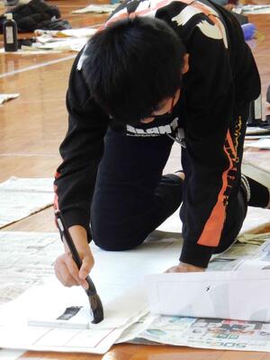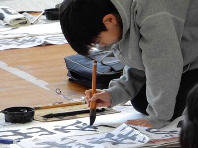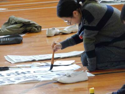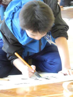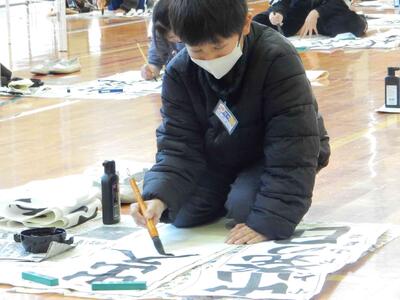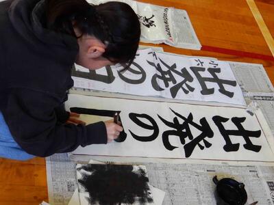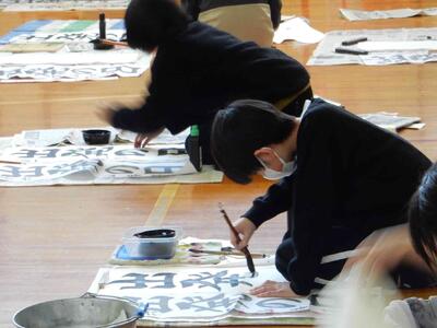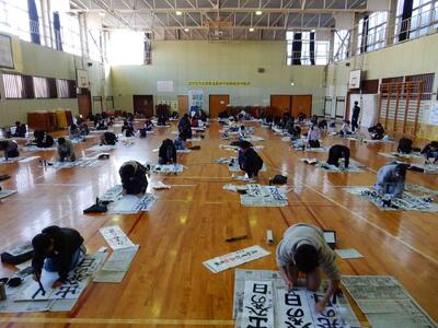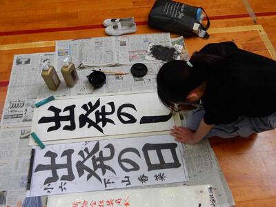 競書会(書きぞめ)6年生 投稿: 原町小学校 (11:27) 3・4時間目は6年生の競書会です。 6年生の競書会会場の緊張感はどの学年よりも高く。集中力の高さを感じます。 6年生の文字は「出発の日」です。